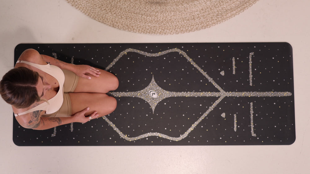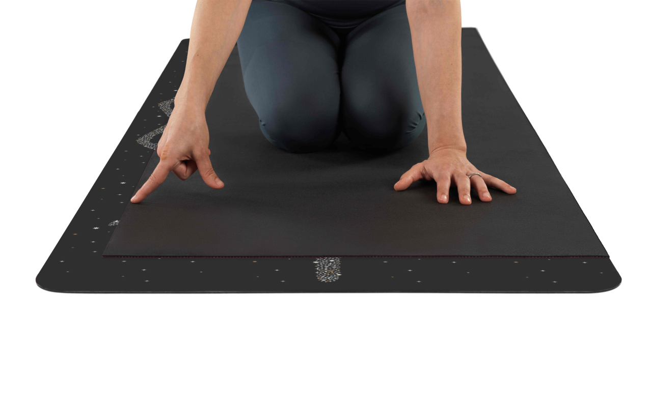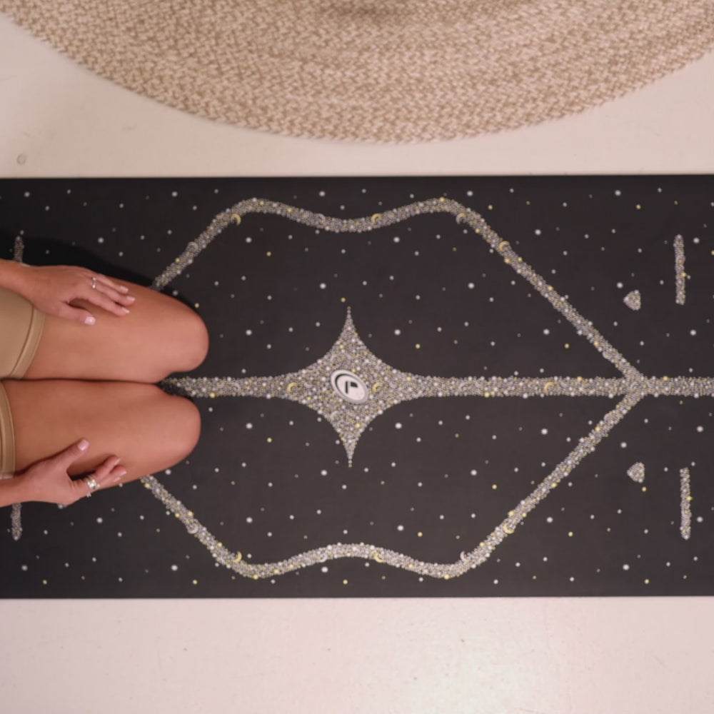 Each mat is carefully hand-printed using our signature non-toxic, eco-friendly metallic inks, creating a shimmering celestial finish that’s truly unique. The Magic Galaxy is a luminous, gold & silver fully printed design, rich in detail, artistry, and craftsmanship, and is also available in a second celestial palette to suit your vibe: Silver on dusk blue or black mat surface.