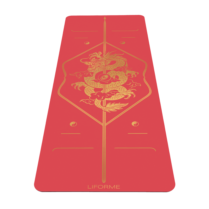The Liforme Dragon and Phoenix Yoga Mats brings harmony and balance to your practice. Set against our red surface, the mat features a striking gold AlignForMe® posture alignment system, designed to guide you intuitively through each pose with improved posture, balance, and body awareness.
