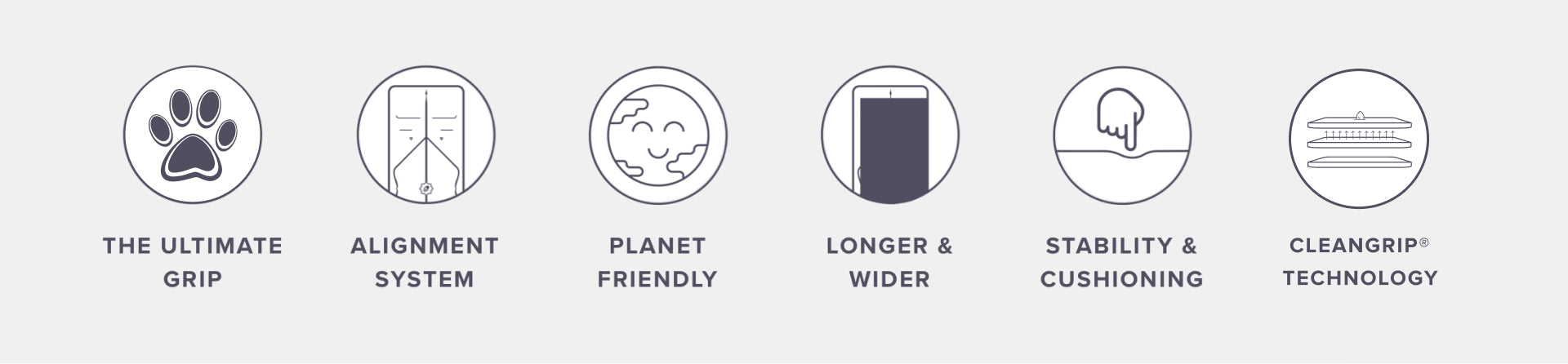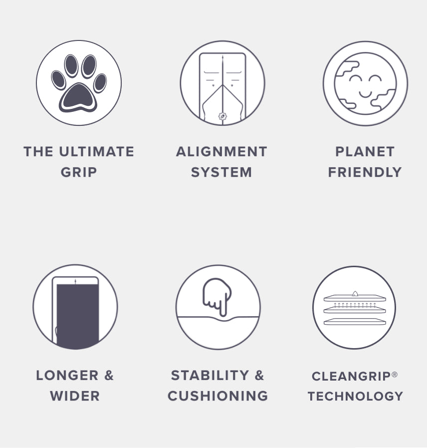 Abbiamo creato una combinazione di materiali innovativa e rivoluzionaria che offre la massima presa mantenendo il tappetino igienico allo stesso tempo. LiformeLo strato di base di sfrutta la stabilità e la rinnovabilità della gomma naturale a base vegetale. Il nostro strato superiore molto sottile è un eco-poliuretano brevettato, liscio e imbottito. Nel mezzo, il nostro strato barriera brevettato CleanGrip® non assorbente si lega senza colle tossiche e consente al sudore e all'umidità di evaporare rapidamente dalla superficie superiore, fornendo la soluzione più aderente, confortevole e igienica.