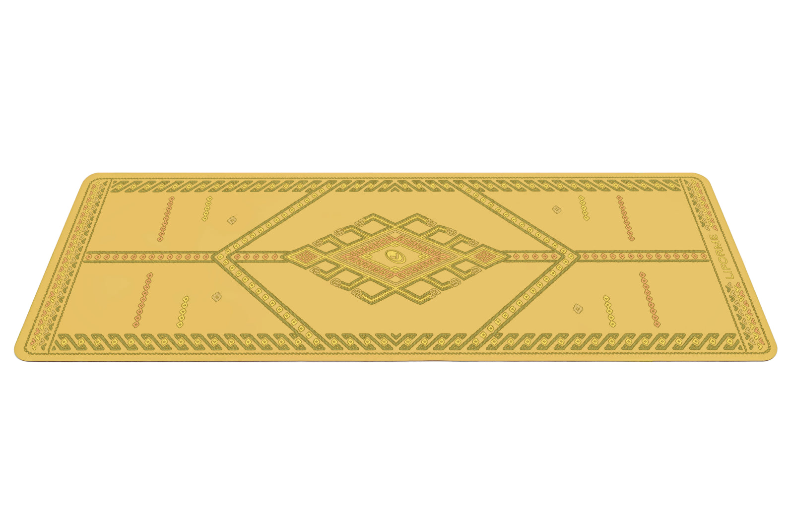 TRULY MAJESTIC. Welcome to the warmth and comfort of home, wherever you practice. Inspired by the beauty of traditional woven rugs, the Liforme Majestic Yoga Mat brings grounding energy and elegance to every flow. Choose from our rich maroon mat surface, featuring our Majestic AlignForMe® Design in deep reds, oranges, yellows, and browns, or our golden sand mat surface, printed with soothing olive green, orange, and yellow hues.